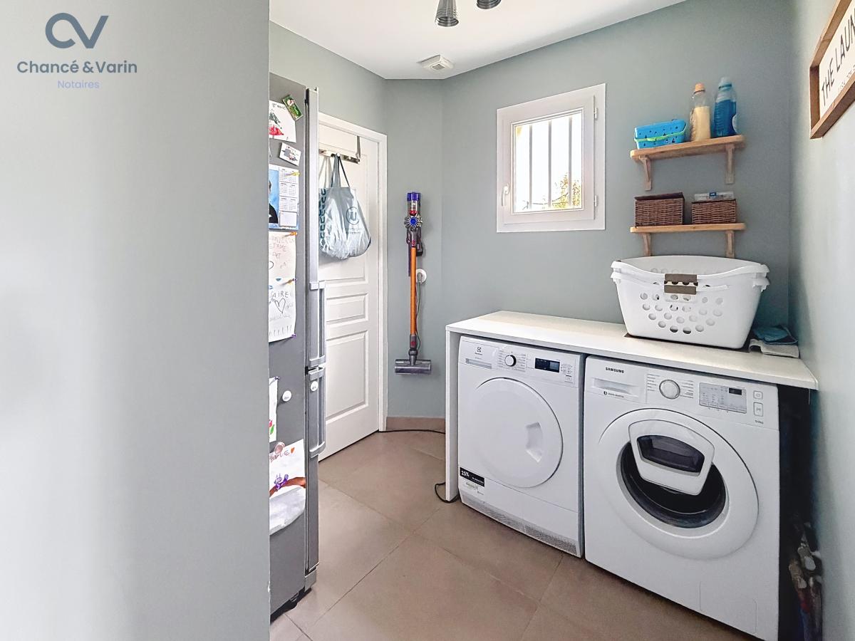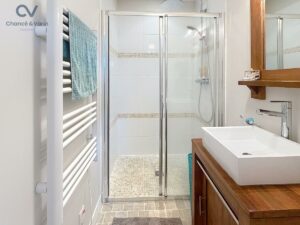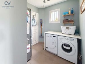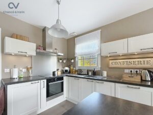 Elle se compose au rez-de-chaussée d’une belle pièce de vie traversante avec cuisine ouverte aménagée et équipée, d’une chambre avec salle d’eau privative, de WC indépendants et d’une buanderie.
