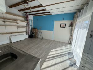 RDC: entrée, séjour-salon, cuisine aménagée, wc et garage aménageable